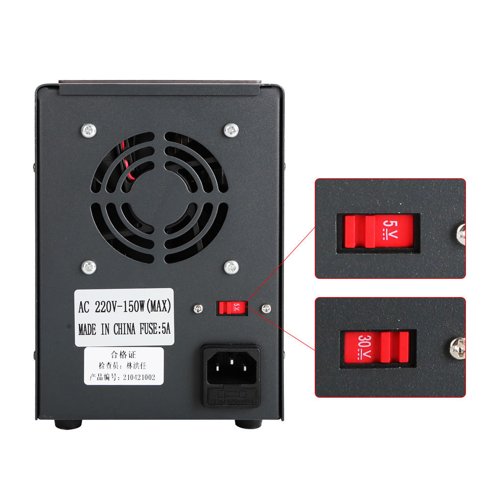 - Adjustable Output: The voltage (0-30V) and current (0-5A) are continuously adjustable, allowing users to dial in exact power requirements for specific projects.