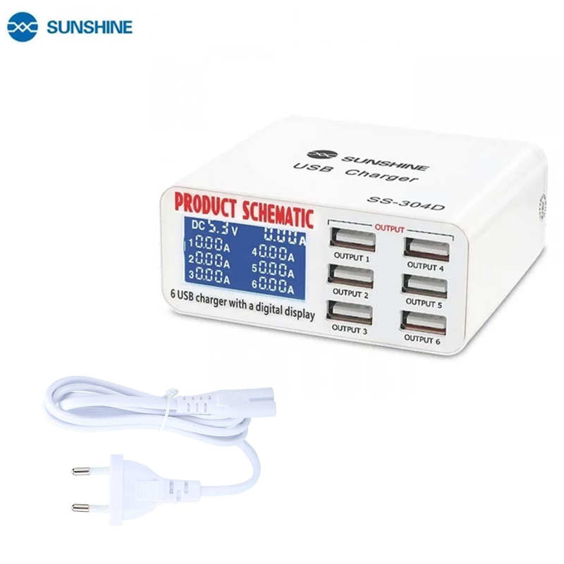 The SUNSHINE SS-304Q 6 port Intelligent USB Fast Charger is a powerful and efficient charging solution for multiple devices. With its intelligent technology, it automatically detects and delivers the optimal charging speed to each connected device, ensuring safe and fast charging. The charger is equipped with six USB ports, allowing you to charge multiple devices simultaneously. Its sleek and compact design makes it perfect for travel or home use. Say goodbye to tangled cables and slow charging times with this versatile and reliable USB fast charger.